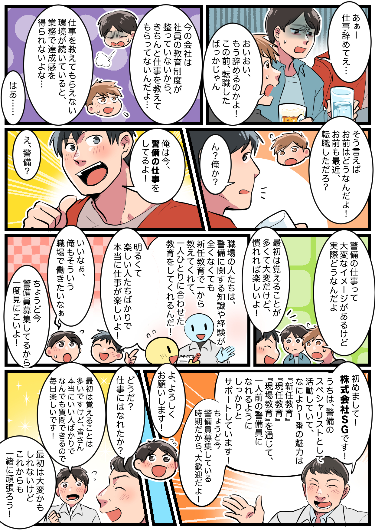 経験者は待遇の面で優遇していますが、未経験者も人柄や熱意を評価して前向きに採用しています。社内の教育制度が整っているので、ゼロからでも一人前の警備員を目指せます。